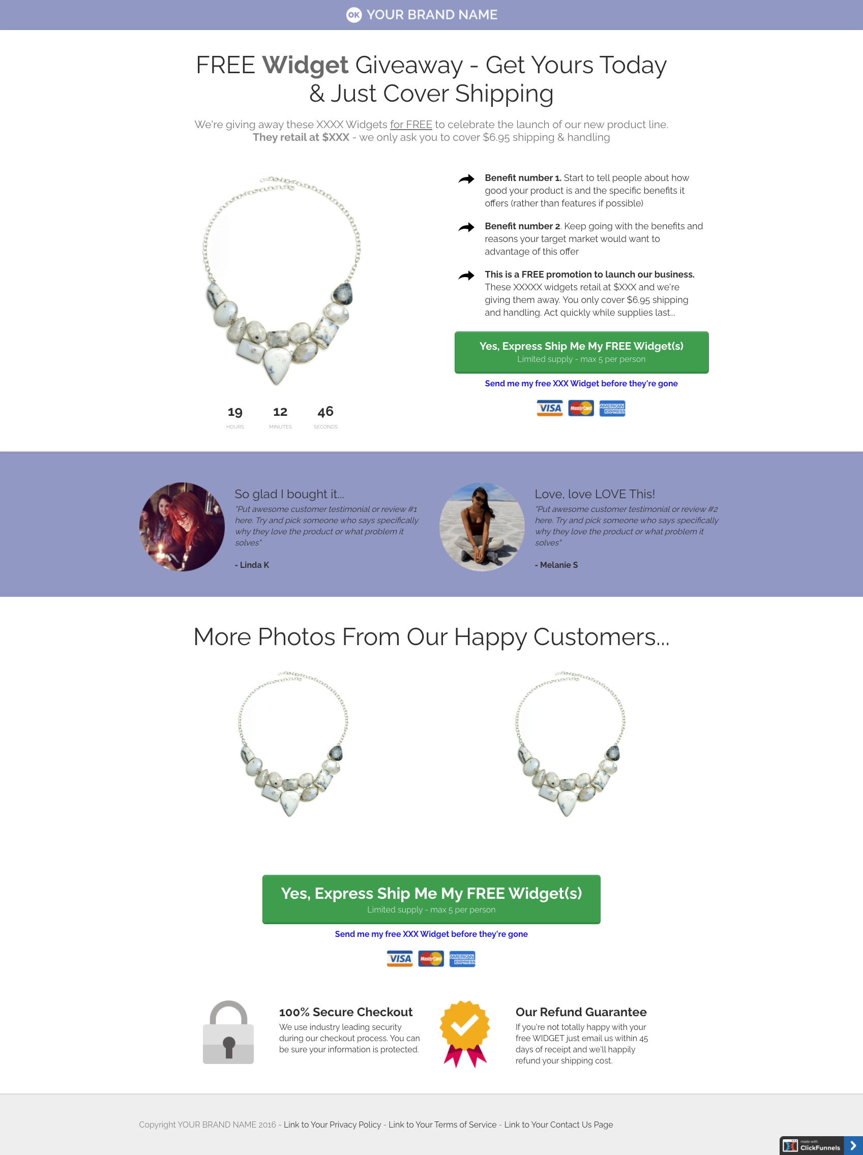 • ​Jewelry Free Offer, Order and Thankyou Page