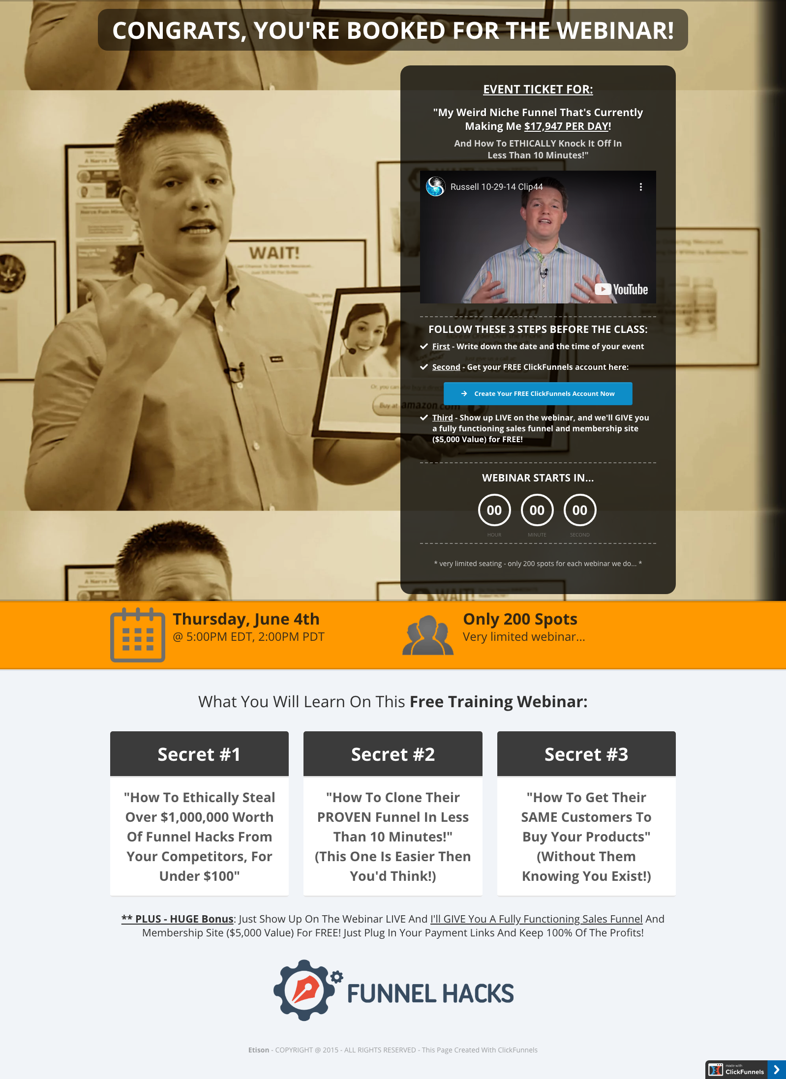 Russell Brunson's Funnel Hacks Webinar Funnel - Just $197