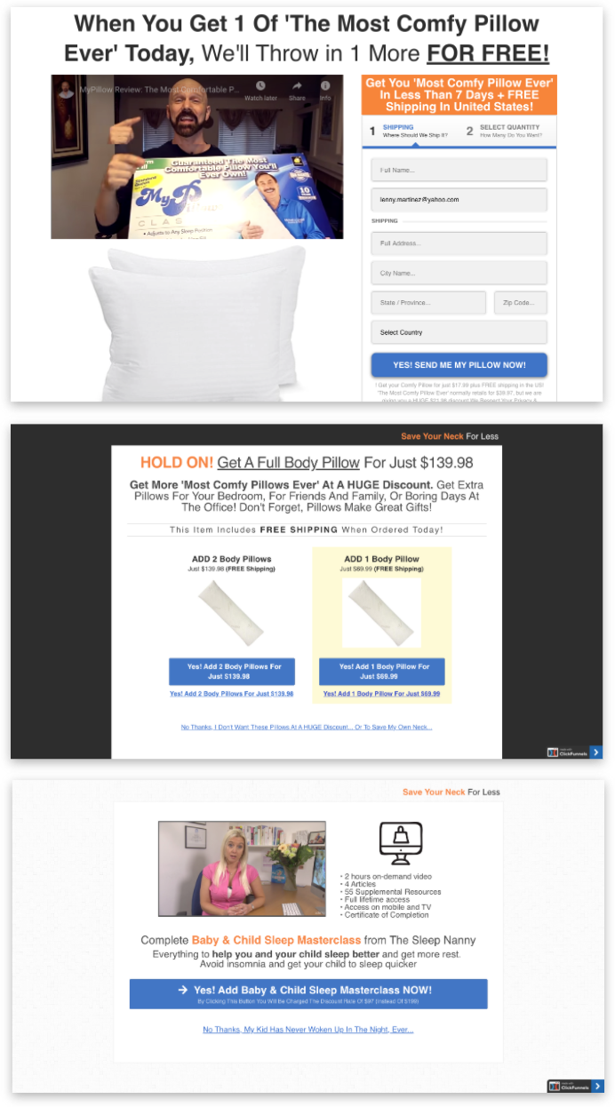 My Pillow Order Form, Order Confirmation and OTO Pages