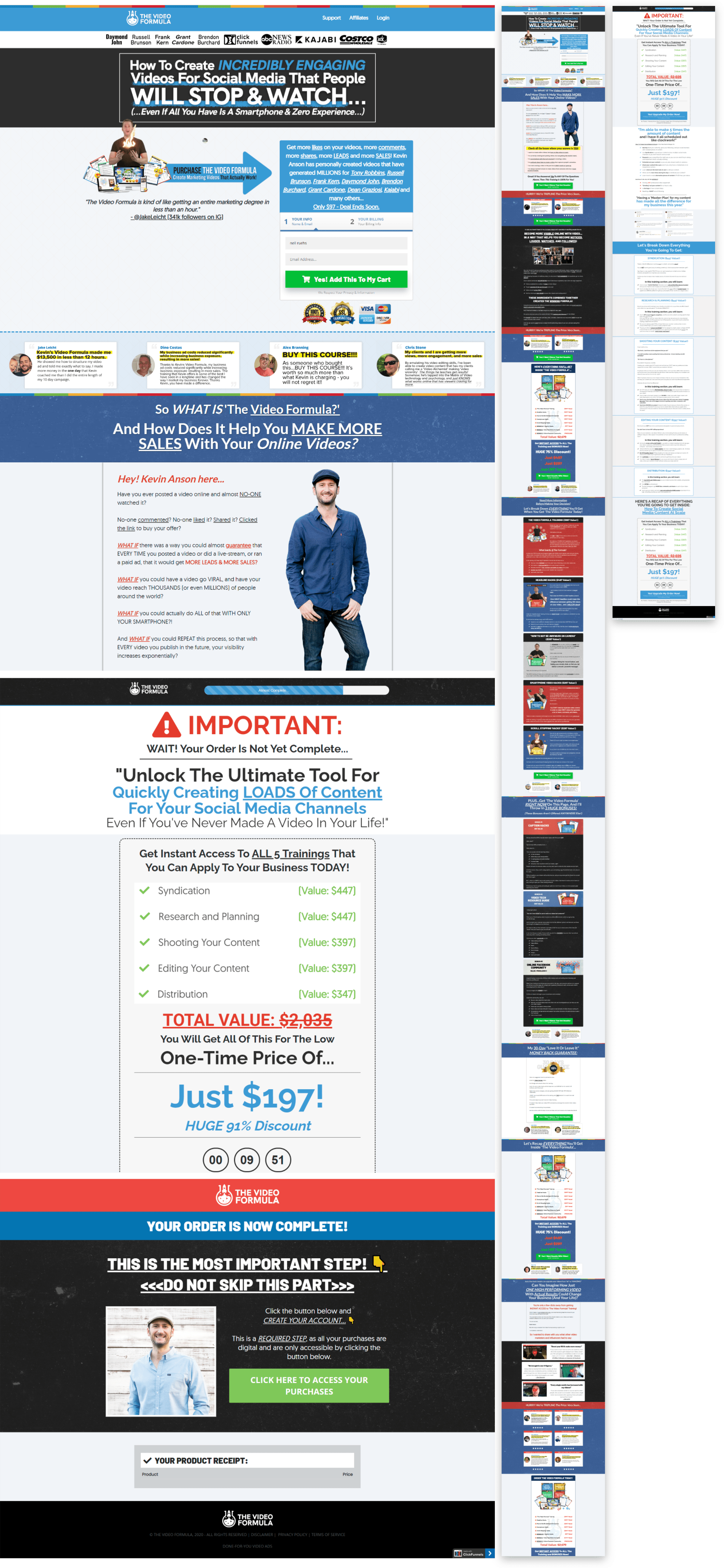 • The Video Formula Order Form, OTO, Order Confirmation and Thankyou Page